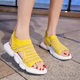 こちらのサンダルは、厚底のボーダー柄が可愛い大人可愛いサンダルです♪