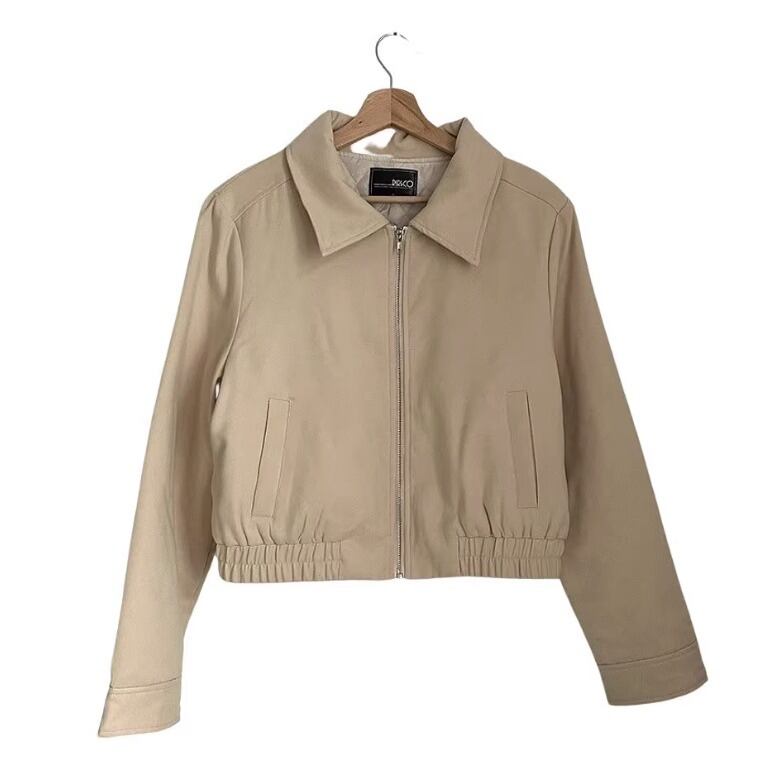 レディース ジャケット アウター 上着 ショート 長袖 襟付き ワイド オーバーサイズ 裾ゴム ファスナー ポケット 前開き アメカジ フルオープン 中厚手 裏地付き シンプル カジュアル おしゃれ かっこいい レトロ こなれ感 ラフ メンズライク ボーイッシュ ルーズ クール 抜け感 カレッジ風 アメリカン アクティブ ワイルド 休日感 ストリート 活発 無地 秋 冬 お出かけ アウトドア キャンプ イベント 休日 ショッピング カフェ 楽ちん 暖かい 体型カバー 普段使い 着回し ブラック ベージュ