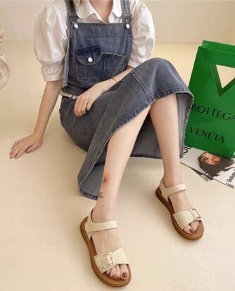 アンクルストラップ付きのフラットサンダルです。