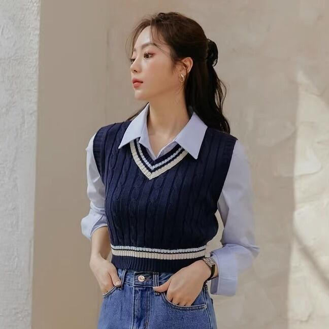 ニットベスト レディース ベスト ショート 袖なし ノースリーブ Vネック 襟なし ノーカラー ケーブルニット 透け感 コンサバ 配色 薄手 ニット ストレッチ 伸縮性 柔らか シンプル カジュアル おしゃれ かっこいい レトロ こなれ感 ラフ 個性的 抜け感 キュート ラグジュアリー カレッジ風 プレッピー アクティブ ナチュラル 休日感 控えめ 無地 ライン 春 夏 お出かけ アウトドア 休日 合コン 重ね着 楽ちん 普段使い 着回し 清楚 トレンド ゆとり感 ホワイト 水色 ブルー ネイビー