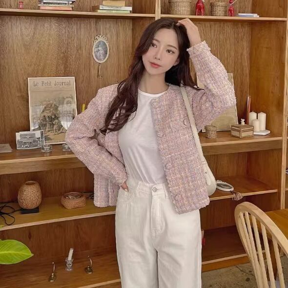 レディース ジャケット 上着 ノーカラージャケット ツイードジャケット ショート 長袖 ラウンドネック 襟なし ノーカラー 前開き コンサバ ボタン 中厚手 ツイード 大人可愛い きれいめ シンプル カジュアル 上品 おしゃれ レトロ こなれ感 ラフ 個性的 エレガント 存在感 フォーマル 抜け感 キュート 都会的 ラグジュアリー ロマンティック ハイエンド ドレッシー フェミニン チェック 秋 冬 オフィス ビジネス OL 通勤 パーティー レストラン ホテル 婚活 Bar お呼ばれ 普段使い ピンク