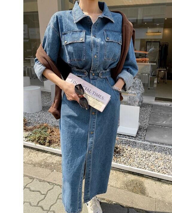 レディース ワンピース シャツワンピ ロング 長袖 襟付き 角襟 ウエストマーク ポケット ブルーデニム 大人可愛い シンプル カジュアル おしゃれ こなれ感 ラフ ルーズ モード系 モダン 存在感 抜け感 ヴィンテージ 無地 春 秋 冬 誕生日 ロングシーズン シーズンレス クリスマス バレンタイン 授業参観 学生 学校 通学 デート お出かけ お泊まり アウトドア 旅行 公園 女子会 休日 ショッピング コンサート ライブ お花見 合コン カフェ 体型カバー 美脚 普段使い 着回し 定番