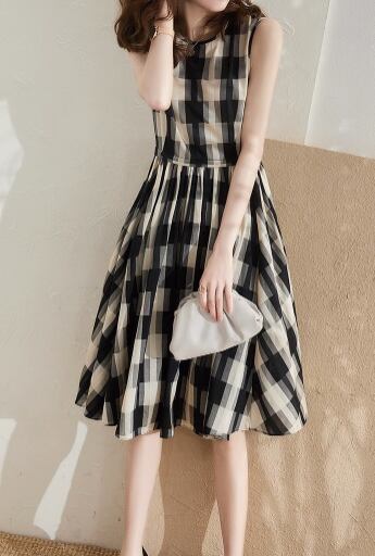 チェック柄のワンピースは、カジュアルでありながらも上品なスタイルを演出してくれます。Uネックとハイウエストのデザインが女性らしいシルエットを作ってくれ、さらにAラインのフレアスカートが膝丈まであることで、可愛らしさもプラスされます。