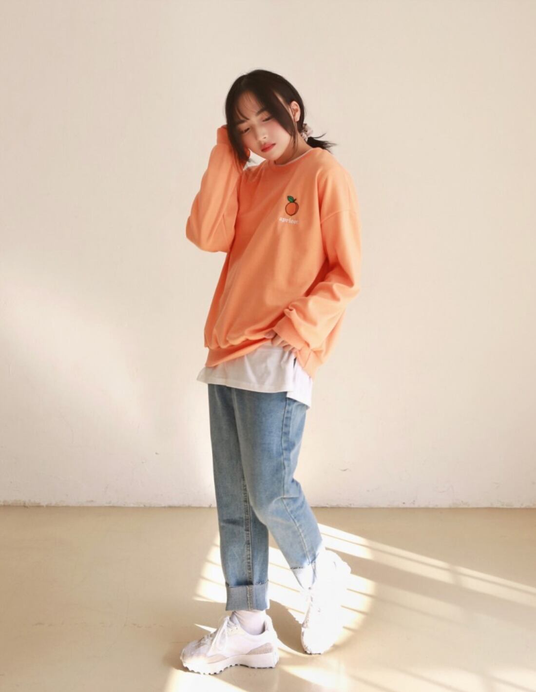 ウエストゴムで着心地抜群のハイウエストデニムパンツ。太もも周りはゆったりし、裾に向かって細くなっていくテーパードシルエットなので、お尻から太ももにかけて気になる体型をカバーしてくれます。ウエストにはボタンが二つ。トップスをインした時のアクセントになってくれます♪そのまま履いてもロールアップしてもOK!