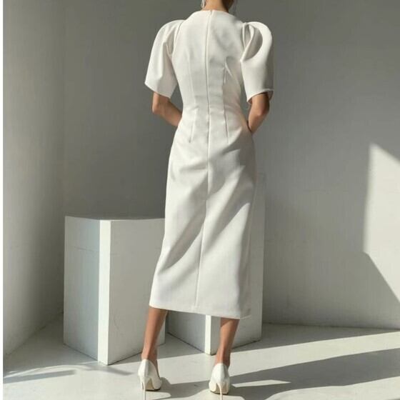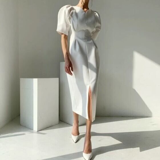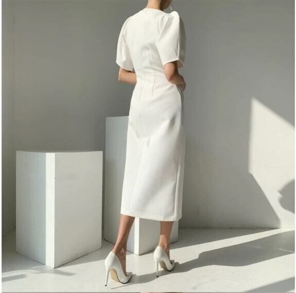 ドレス パーティー 二次会 披露宴 演奏会 発表会 ステージ 舞台 フォーマル キャバ ダンス 衣装 コスプレ コスチューム ラウンジ クラブ 膝下 ミモレ 半袖 Vネック タイト スリム 細身 可愛い きれいめ シンプル 大人可愛い 上品 おしゃれ クール モード エレガント モダン 主役級 存在感 フォーマル とろみ感 クラシック 清楚 ゴージャス 華やか 無地 イベント ホテル レストラン 韓国 体型カバー 二の腕カバー 美脚 脚長 高見え 格上げ プチプラ 女子会 シーズンレス 白 黒