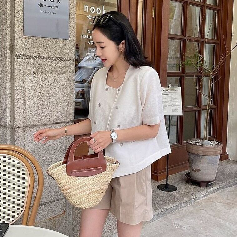 レディース ジャケット 上着 ノーカラー ショート 半袖 ストレート ダブルプレスト ボタン ストレッチ かわいい 大人可愛い きれいめ シンプル カジュアル 上品 おしゃれ かっこいい レトロ ガーリー クール エレガント ラブリー キュート 都会的 ナチュラル 無地 春 夏 謝恩会 OL 通勤 学生 通学 デート お出かけ パーティー イベント 女子会 ホテル ショッピング カフェ 韓国 コーデ 体型カバー 普段使い 着回し モテ トレンド 流行 インスタ映え フリーサイズ ホワイト ネイビー