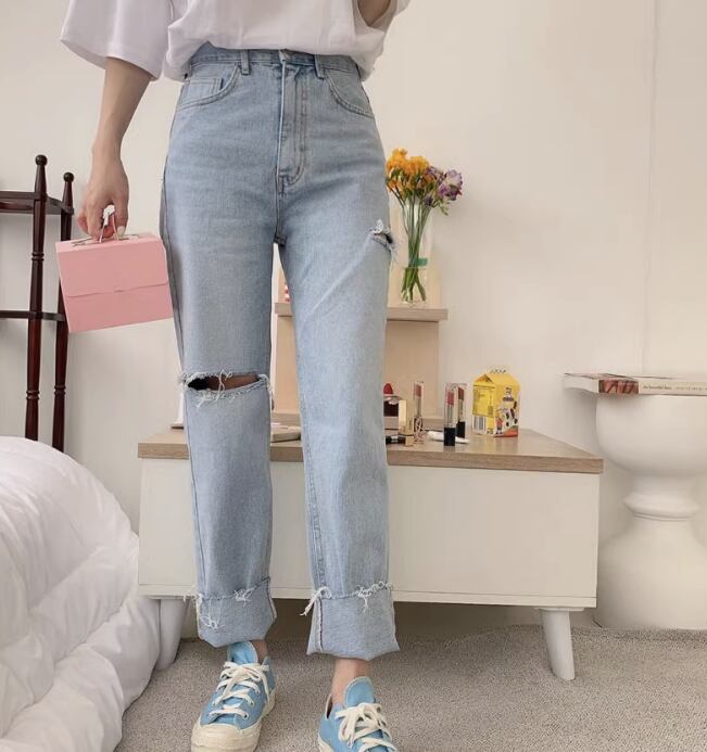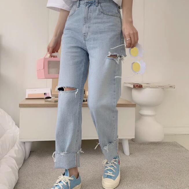 レディース パンツ ボトムス デニム Gパン ストレートパンツ テーパードパンツ ロングパンツ デニムパンツ ロング アンクル丈 フルレングス ワイド ルーズフィット ファスナー ポケット ハイウエスト ボタン ヴィンテージ ダメージ ウォッシュ カットオフ ブルーデニム かわいい 大人可愛い きれいめ シンプル カジュアル おしゃれ こなれ感 ラフ 個性的 クール 抜け感 キュート 無地 オールシーズン デート お出かけ 休日 韓国 オルチャン 美脚 脚長 普段使い モテ トレンド 流行 インスタ映え