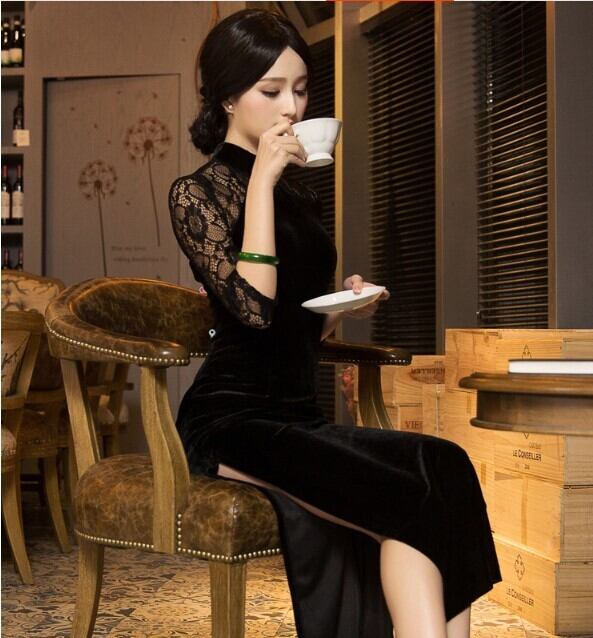 セクシーで洗練された魅力を纏った黒のロングドレス。結婚式、パーティー、二次会、披露宴、演奏会、発表会、ステージ、舞台、キャバ、ダンスなどの特別な場に相応しい華やかなスタイルを演出します。7分袖とタイトなシルエットが女性の美しさを引き立て、レースの透け感がセンシュアルな魅力を添えます。