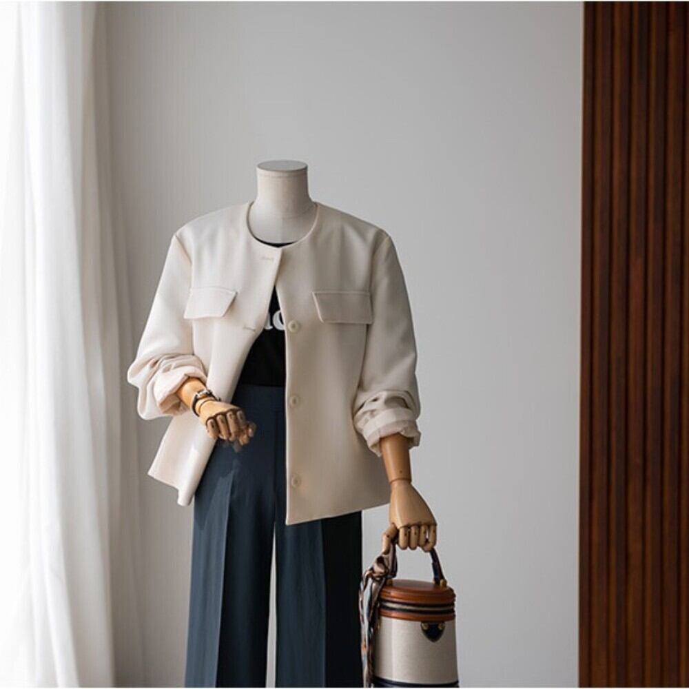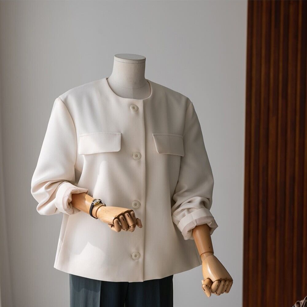 レディース ジャケット 上着 ノーカラーコート 長袖 ノーカラー ストレート ポケット ボタン 薄手 かわいい 大人可愛い きれいめ シンプル カジュアル 上品 おしゃれ かっこいい ガーリー クール エレガント キュート クラシカル ナチュラル 無地 春 秋 謝恩会 ママ 通勤 学生 通学 部活 デート お出かけ パーティー イベント 女子会 ショッピング お花見 カフェ 韓国 コーデ 体型カバー 普段使い 着回し モテ 清楚 トレンド 流行 インスタ映え L XL ホワイト ブラック ネイビー