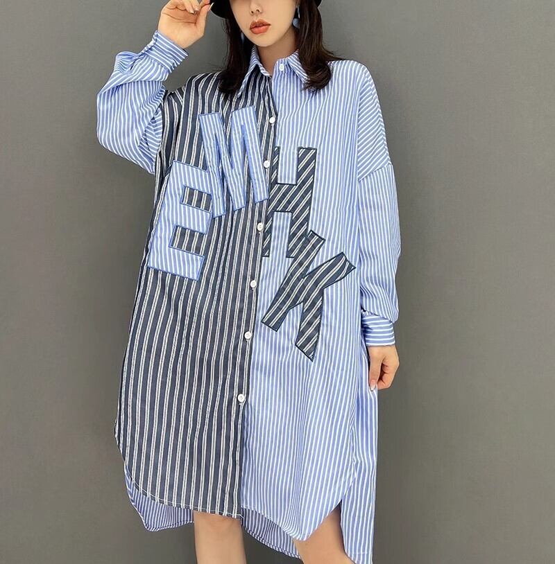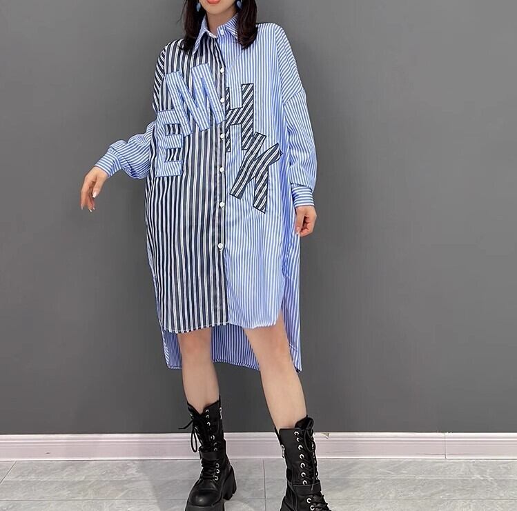 ワンピース ワンピ シャツ シャツワンピース 羽織 膝丈 ひざ丈 長袖 襟付き ワイド アシンメトリー 前開き フロントボタン かわいい シンプル カジュアル おしゃれ こなれ感 ラフ スポーティー ルーズ 個性的 クール 主役級 存在感 ストライプ ロゴ 春 秋 冬 レディース デイリー 着回し 普段使い 重ね着 楽ちん ボリューム 体型カバー 脚長 定番 リラックス レイヤード S M L ゆったり オーバーサイズ ビッグシルエット 黒 ブラック 青 ブルー 黄色 イエロー 紺 ネイビー バイカラー