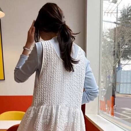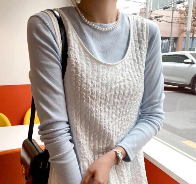 無地のシンプルデザインなのでどんなスタイリングにも合わせやすく、レイヤードスタイルにも最適です◎