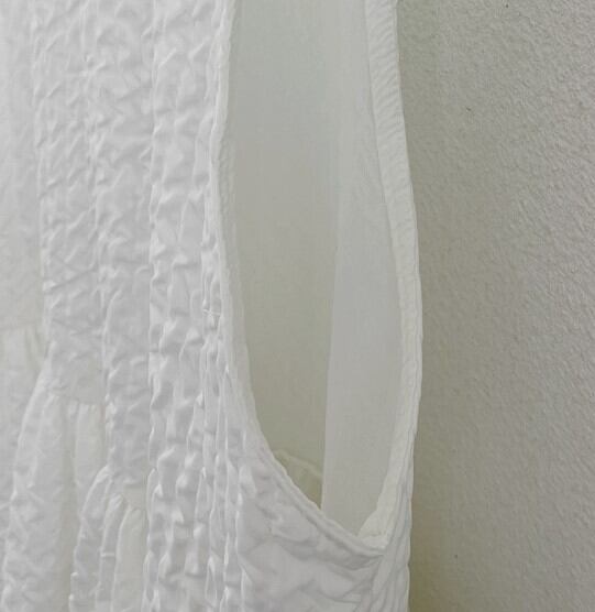 エンボス加工が施されたノースリーブワンピース♪