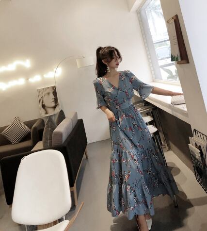 レディース ワンピース フレア ティアード ロング マキシ 丈長 5分袖 Vネック セミフレア Aライン 切り替え 異国風 切り替えデザイン かわいい 大人可愛い きれいめ シンプル カジュアル 上品 おしゃれ ガーリー ルーズ エレガント モダン フォーマル とろみ感 ヴィンテージ ラブリー キュート ゴシック ロリータ 都会的 ラグジュアリー クラシカル ベーシック ナチュラル 花柄 夏 デート お出かけ 公園 女子会 休日 韓国 オルチャン コーデ 体型カバー 美脚 脚長 プチプラ 普段