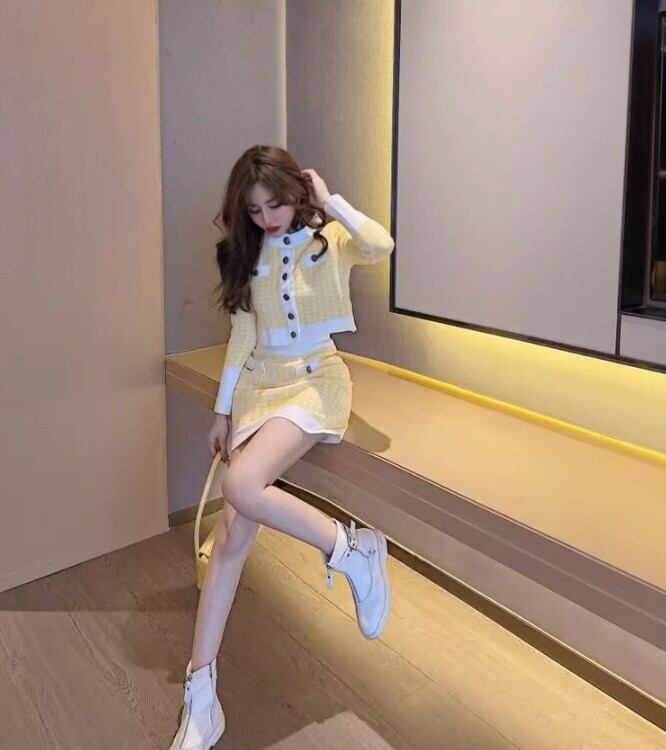 個性的なスタイルを演出するレディーススカート&ジャケットのセットアップが登場!ミニ丈のショートスカートとスリムな長袖ジャケットは襟なしデザインでカジュアルさと上品さを兼ね備え、バイカラーとポケットのアクセントがおしゃれさを引き立てます。かわいさと大人可愛さを同時に叶えるこのセットは、個性的でクールなエレガントスタイルの主役級アイテム。存在感と都会的な魅力を放ち、千鳥格子の柄が秋冬のファッションに華やかさを添えます。