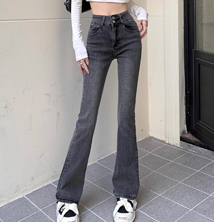 ハイウエストⅹブーツカットで脚長効果抜群!スリムフィットなブーツカットデニムパンツ。膝下からの絶妙なフレア具合がメリハリある美しい美脚シルエットを作ってくれます♡どんなコーデにも合わせやすく様々なシーンで大活躍まちがいなし!使いやすい2カラーをご用意しました♪