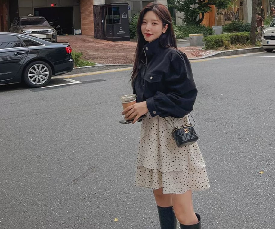 ミリタリージャケットのかっこよさとパフスリーブの女性らしさが相性抜群の1着。
