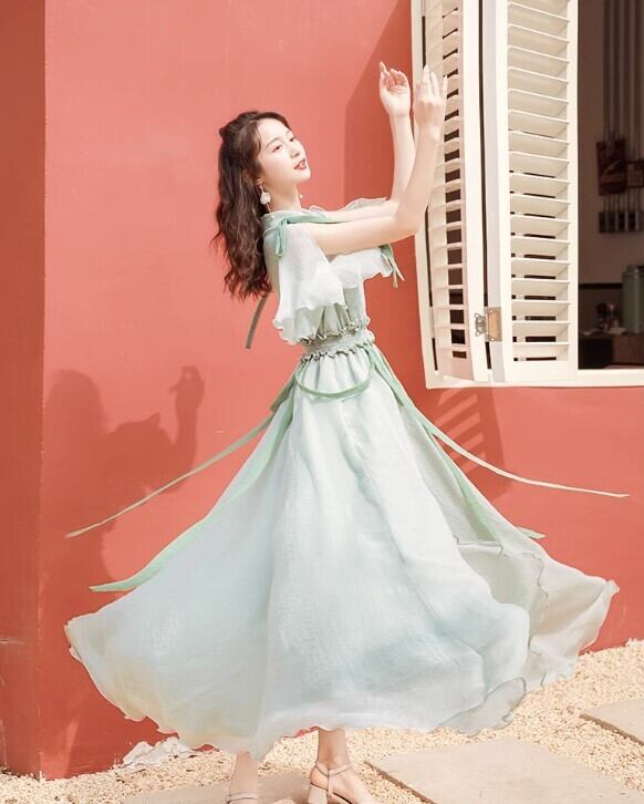 ドレス パーティー 二次会 披露宴 演奏会 発表会 ステージ 舞台 キャバ 衣装 コスプレ コスチューム 謝恩会 演劇 ラウンジ クラブ ロング フレアスリーブ フレア シフォン 透け感 シースルー 可愛い きれいめ シンプル 大人可愛い 上品 おしゃれ キュート ガーリー モダン 主役級 存在感 とろみ感 ゴージャス 華やか 無地 イベント 旅行 ホテル ガーデン レストラン 韓国 体型カバー 二の腕カバー 美脚 脚長 高見え 格上げ シーズンレス グリーン