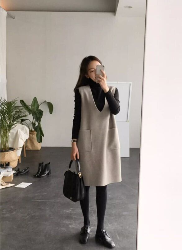 トップス ワンピース セットアップ 膝丈 長袖 ハイネック ワイド Iライン ポケット かわいい 大人可愛い きれいめ シンプル カジュアル おしゃれ かっこいい モード系 エレガント モダン 主役級 存在感 フォーマル 抜け感 都会的 無地 秋 冬 誕生日 クリスマス バレンタイン OL 学生 学校 通学 部活 デート お出かけ お泊まり 旅行 レストラン 公園 女子会 休日 高原 ホテル ガーデン ショッピング 発表会 コンサート ライブ 合コン コンパ カフェ 普段使い 着回し