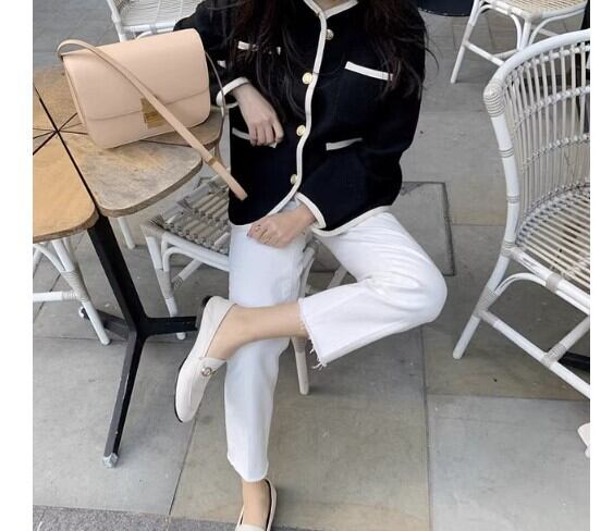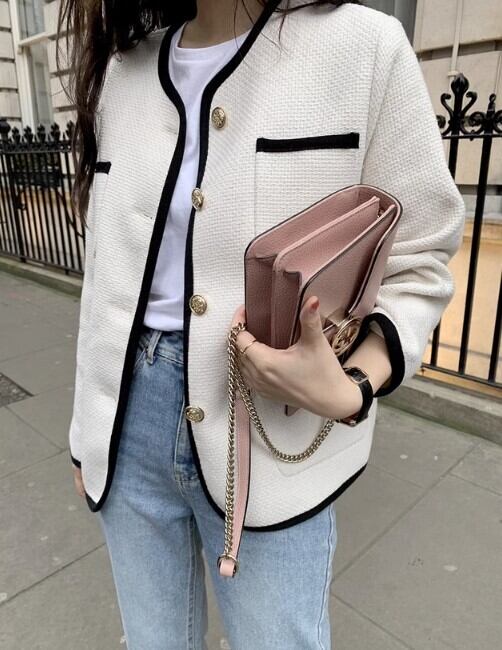 ノーカラージャケットの上品さとモード系のクールさが魅力。長袖で襟なしのデザインは、シンプルでありながらも存在感を放ちます。ポケットも備えた実用性も抜群。ツイード素材が高級感を演出し、大人可愛いスタイリングを叶えます。