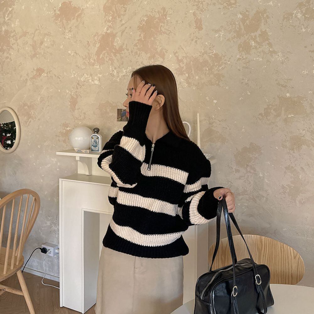 おしゃれなレディースセーター。程よい厚みのニット素材で、秋冬のお洒落にぴったり。ジップアップデザインが首回りをスッキリ見せ、大人可愛い雰囲気を演出します。着心地は抜群で、動きやすいので通勤やデート、お出かけにも最適です。着回しもしやすく、普段使いにもぴったり。カジュアルにはもちろん、上品なコーデにもピッタリ!