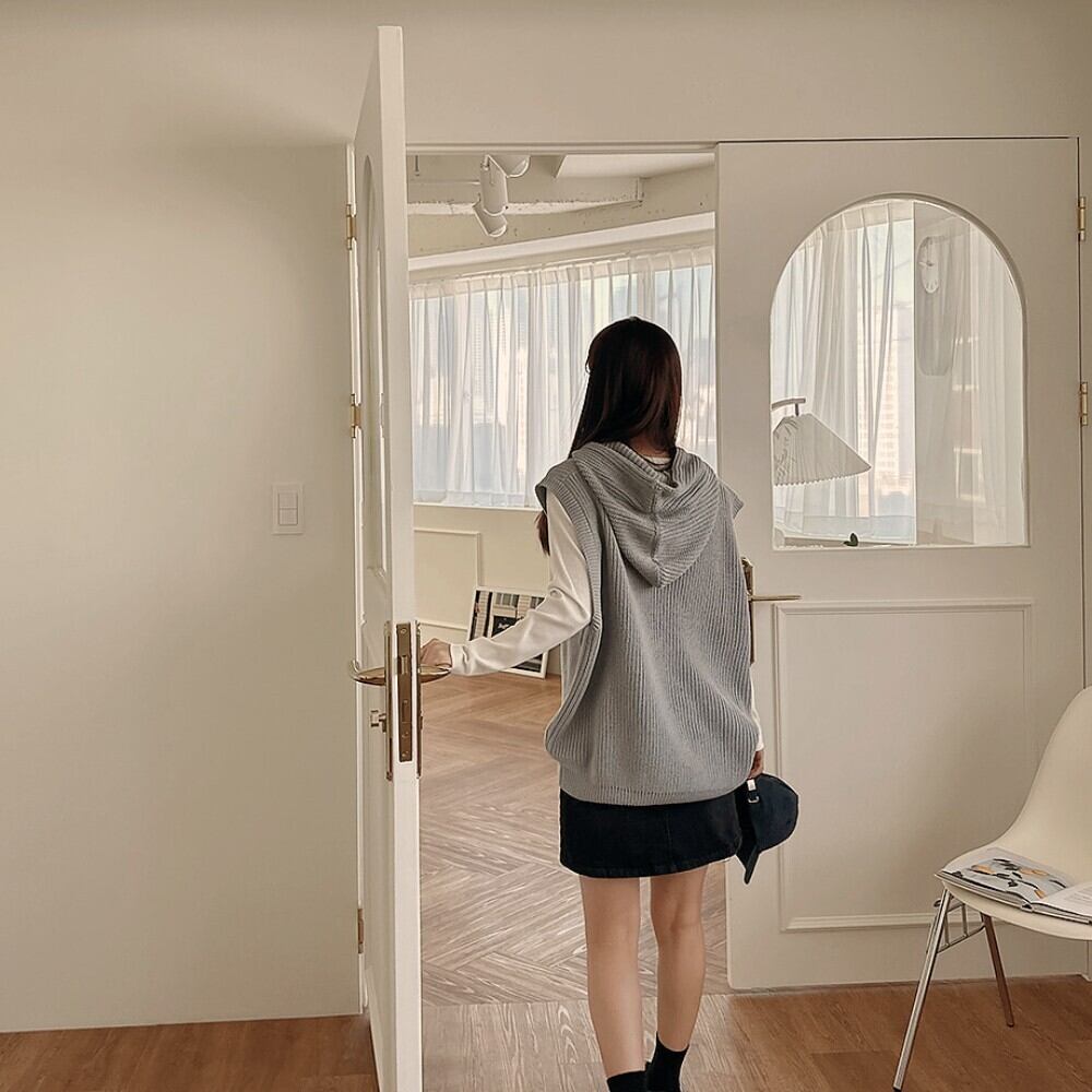 レディース ベスト ショート 袖なし フード リブ ニット ストレッチ かわいい 大人可愛い きれいめ シンプル カジュアル おしゃれ かっこいい こなれ感 ラフ ガーリー ルーズ クール ラブリー キュート 学生風 ナチュラル 無地 春 秋 冬 ママ 通勤 学生 通学 部活 デート お出かけ 旅行 女子会 ショッピング コンサート ライブ カフェ 重ね着 韓国 コーデ 楽ちん 体型カバー 普段使い 着回し モテ 清楚 トレンド 流行 インスタ映え ゆったり ゆる フリーサイズ ブラック グレー ブルー