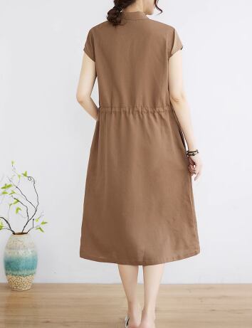 レディース ワンピース チュニック シャツワンピ 膝下 ミモレ フレンチスリーブ Vネック 襟付き ワイド 切り替え ボタン ウエストマーク ウエストリボン ポケット 切り替えデザイン リネン 綿 コットン 麻 かわいい 大人可愛い シンプル カジュアル 上品 おしゃれ かっこいい エキゾチック こなれ感 ラフ ガーリー クール モード系 エレガント とろみ感 ラブリー キュート カントリー ロマンティック ナチュラル 無地 夏 学生 学校 デート パーティー イベント 旅行 海 女子会 休日 バカンス