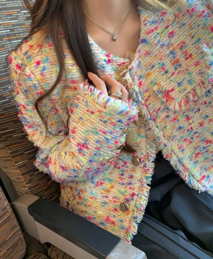 レインボーカラー レディース ジャケット 上着 羽織 ノーカラージャケット 長袖 ノーカラー ストレート 前開き 中厚手 フリンジ かわいい 大人可愛い きれいめ シンプル カジュアル 上品 おしゃれ こなれ感 ラフ 個性的 エレガント 主役級 存在感 フォーマル とろみ感 抜け感 都会的 無地 秋 冬 誕生日 発表会 ハロウィン クリスマス バレンタイン 授業参観 大会 会議 MTG ミーティング プレゼン ママ マタニティ オフィス ビジネス OL 通勤 学生 学校 通学 デート お出かけ お泊まり