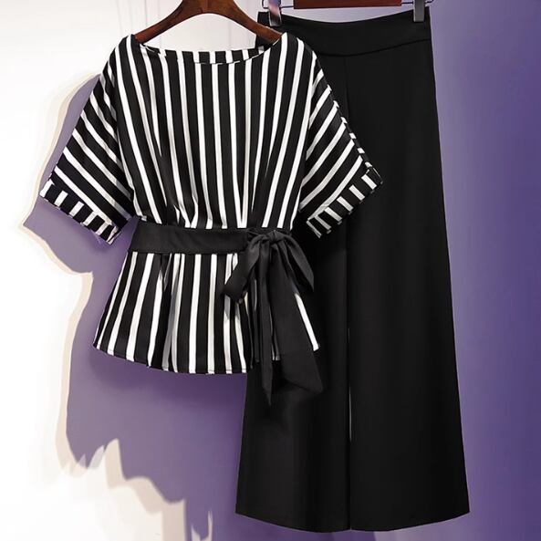 ツーピース レディース トップス ボトムス ブラウス ガウチョパンツ 膝下 クロップド丈 5分袖 Uネック ワイド ウエストマーク ウエストリボン ポリエステル かわいい 大人可愛い きれいめ 上品 おしゃれ モダン 主役級 存在感 ラグジュアリー クラシカル ロマンティック ストライプ 春 夏 秋 ママ 20代 30代 OL デート お出かけ レストラン 女子会 休日 ホテル ショッピング 発表会 お花見 合コン コンパ カフェ オフィスカジュアル コーデ 楽ちん 美脚 脚長 プチプラ 普段使い 定番
