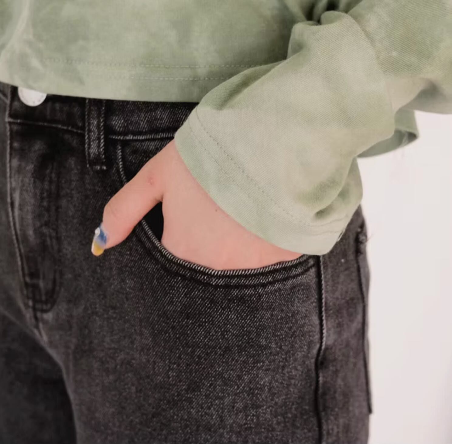 カジュアルスタイルにピッタリのデニムパンツ。ゆったりめのストレートシルエットで、クロップド丈が脚を軽やかに見せてくれます。季節を問わず、ロングシーズン着用できるのがデニムパンツのいいところ。どんなシーンでも使える一枚、ぜひあなたのワードローブに加えてみてください♪