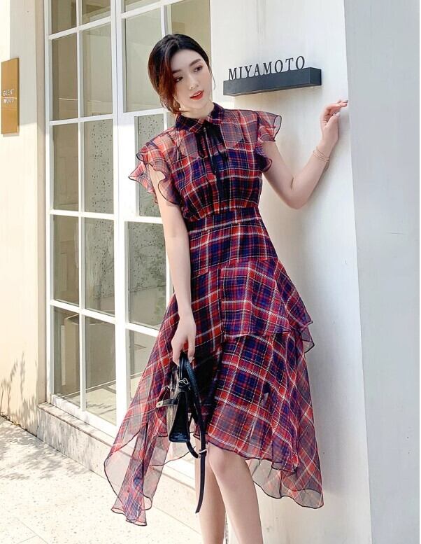 フリル袖 ドレス ワンピース パーティー 演奏会 発表会 ステージ 舞台 キャバ ダンス 衣装 コスプレ コスチューム 演劇 ラウンジ クラブ 半袖 Uネック フレア フリル 切り替えデザイン 可愛い カジュアル 大人可愛い おしゃれ かっこいい キュート ガーリー エレガント モダン 主役級 存在感 ゴージャス 華やか チェック柄 イベント リゾート 旅行 ホテル ガーデン レストラン 高原 韓国 体型カバー 美脚 脚長 高見え 格上げ 女子会 シーズンレス ワインレッド レッド