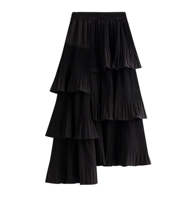 ラフなスタイルにエレガントさをプラスした、伸縮性のあるティアードスカート。大人可愛い印象とキュートなデザインが魅力です。アシンメトリーのフレアAラインがこなれ感を演出し、都会的でモダンなスタイルを叶えます。春から冬まで着回せるシンプルさと、存在感のある主役級のスカートです。