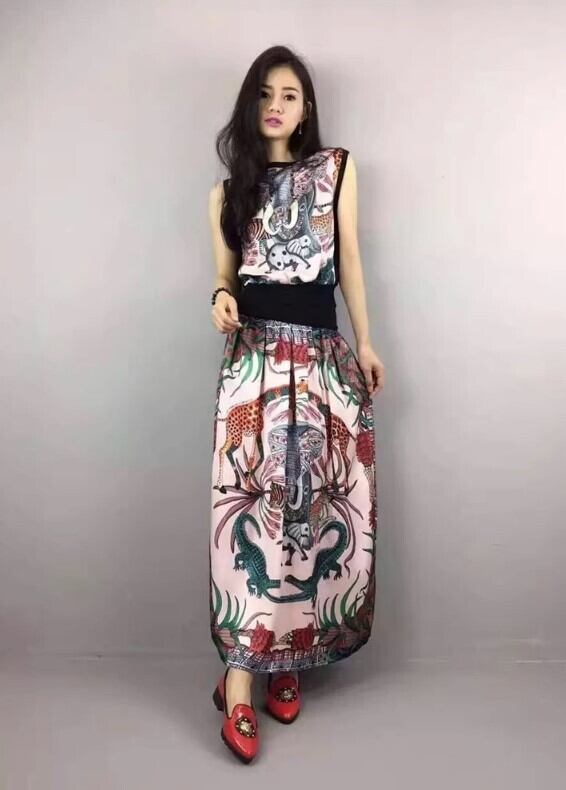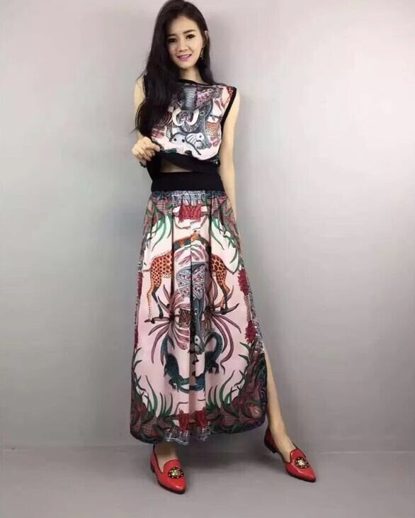 個性的で華やかなスタイルを演出するレディースロングスカートと袖なしのトップス。ラウンドネックとフレアのデザインがかわいらしさと大人可愛さを引き立てます。アジアンやエスニックな要素を取り入れたこなれ感と、ラフでルーズな雰囲気が個性を際立たせます。都会的なスタイルにもマッチし、総柄デザインが存在感を演出します。