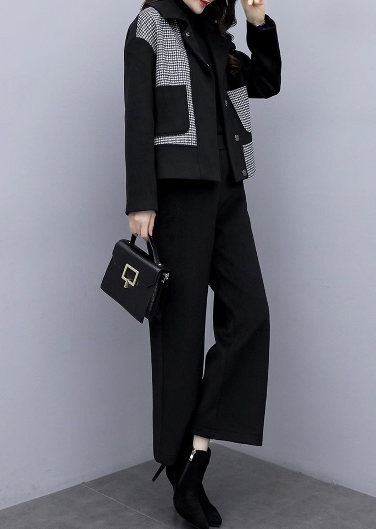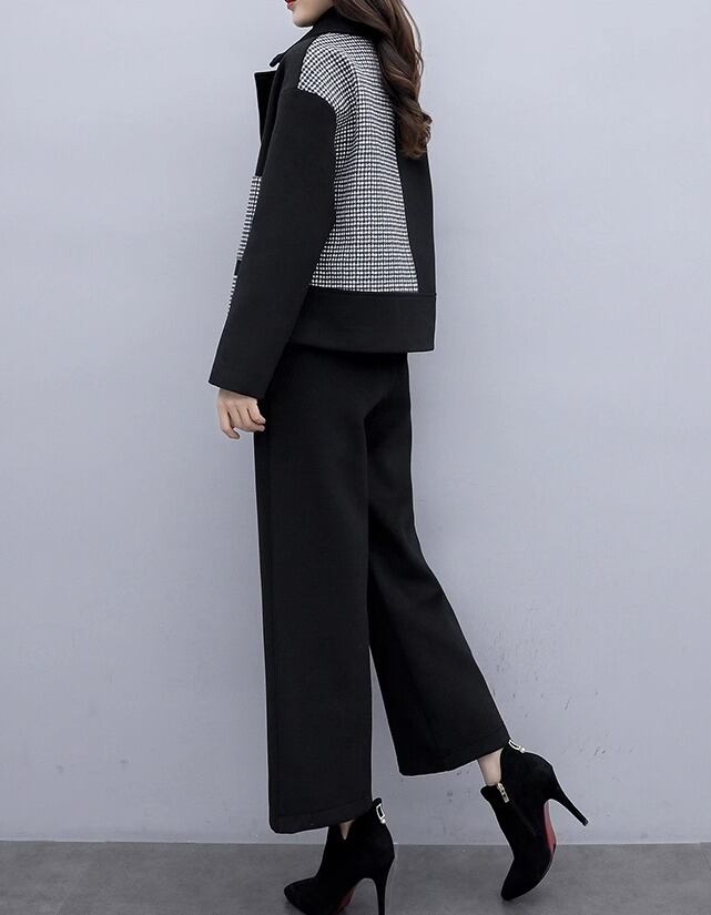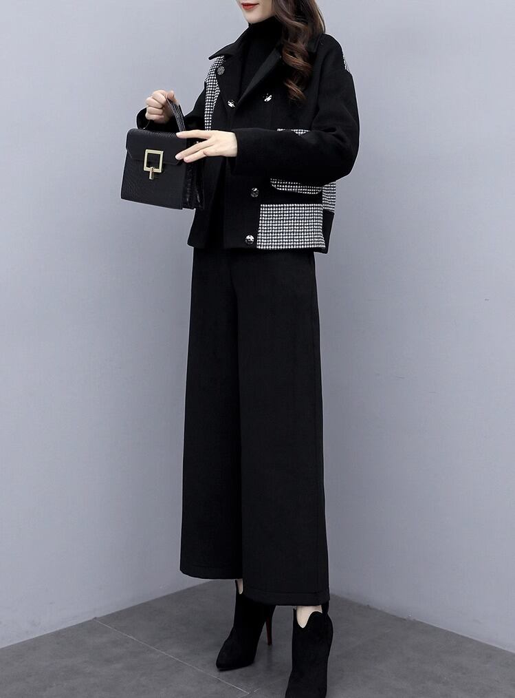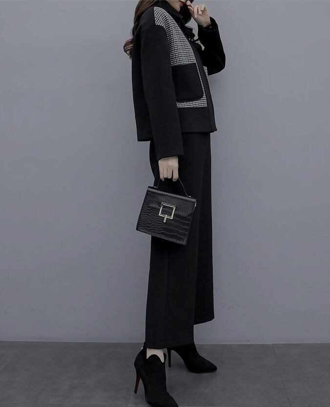 レディース ジャケット パンツ セットアップ 上着 ワイドパンツ ロング 8分丈 長袖 襟付き ワイド ストレート Iライン ポケット 前開き コンサバ バイカラー 配色 スナップボタン 異素材ミックス きれいめ カジュアル 上品 おしゃれ レトロ こなれ感 ラフ マニッシュ ルーズ 個性的 存在感 フォーマル 抜け感 都会的 ラグジュアリー クラシカル ハイエンド ドレッシー 無地 チェック 秋 冬 二次会 披露宴 会議 オフィス ビジネス パーティー レストラン ホテル 婚活 高見え 暖か ブラック