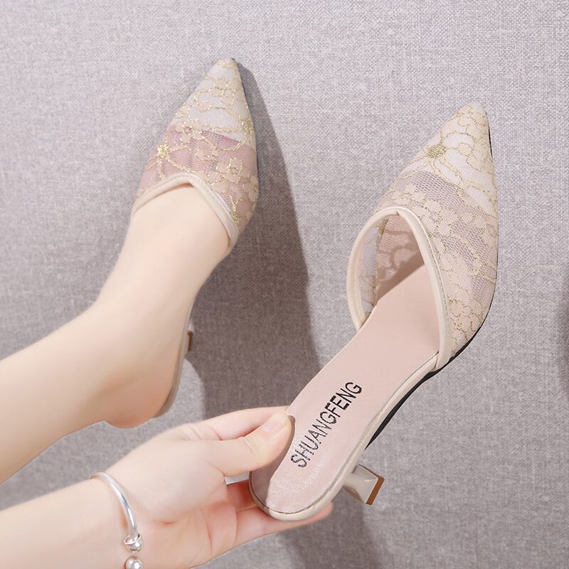 レディース ミュール ヒールパンプス ハイヒール 7cm ピンヒール ポインテッドトゥ レース 美脚 脚長 かわいい 大人可愛い シンプル カジュアル おしゃれ エレガント ラブリー キュート ガーリー こなれ感 華やか フェミニン スタイリッシュ 花柄 春 夏 デート お出かけ パーティー イベント リゾート 旅行 海 プール ホテル レストラン 公園 休日 デイリー 普段使い 高見え モテ 22.5cm 23.0cm 23.5cm 24.0cm 24.5cm 25.0cm 黒 ゴールド シルバー