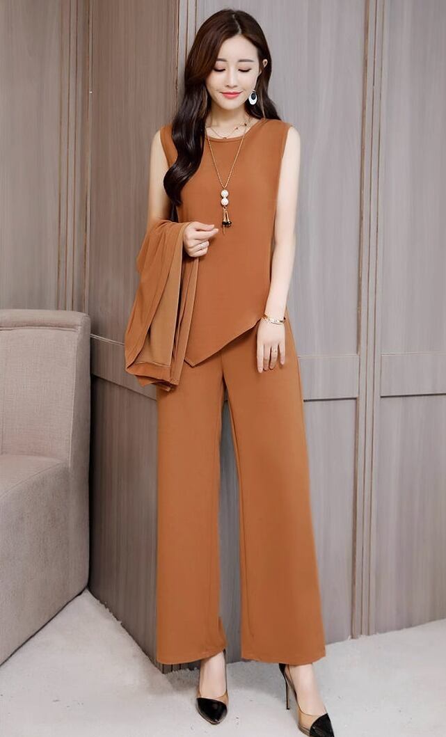 スリーピース レディース カーディガン ベスト 上着 羽織 ストレートパンツ ロングパンツ ワイドパンツ ロング ノースリーブ 長袖 タンクトップ ラウンドネック 襟なし ノーカラー ワイド Iライン ポケット 前開き 2way コンサバ 薄手 柔らか きれいめ シンプル カジュアル 上品 おしゃれ レトロ こなれ感 ラフ ルーズ 抜け感 都会的 ラグジュアリー 休日感 ハイエンド 無地 春 夏 オフィス ビジネス パーティー レストラン ホテル 楽ちん 着回し ゆったり ブラック ブラウン レッド