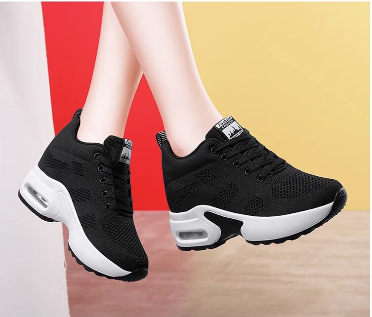 軽さと快適さを兼ね備えたメッシュスニーカーが、あなたの足元を彩ります。エアークッションの中敷きで、歩くたびに優しくクッションされるので、長時間の外出やスポーツ、ダンスの時でも疲れにくくなっています。厚底デザインは、美脚効果も抜群!また、幅広い甲高や柔らかな素材のため、足にフィットしやすく、快適な履き心地を実現しています。