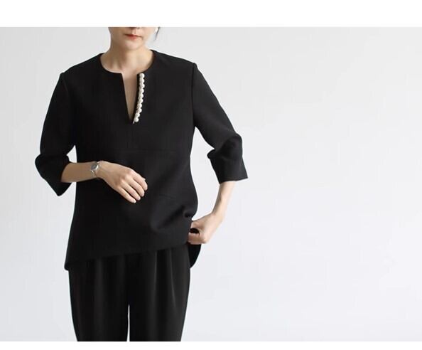 上品で可愛らしい大人の女性にぴったりなレディースシャツ・ブラウス。7分袖と美しいVネックが洗練された印象を与えます。シンプルなデザインながらも、モード系の要素やエレガントなディテールが魅力で、クールでかっこいいスタイルを演出します。ミーティングやビジネスシーン、OLの通勤や学生の通学、デートやお出かけにぴったりです。