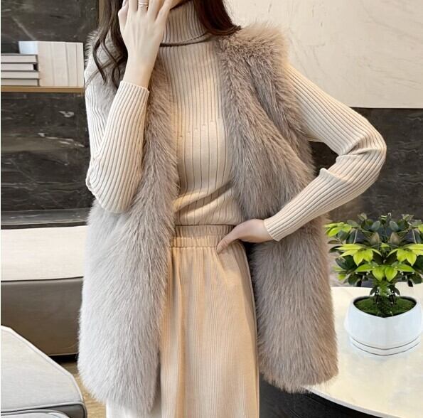 個性的で上品なレディースベスト。ファーがアクセントとなり、かわいさと大人の可愛さを兼ね備えています。シンプルながらもモード系の要素があり、都会的でラグジュアリーな雰囲気を演出します。存在感のある無地のデザインは、秋から冬までの季節にぴったりです。