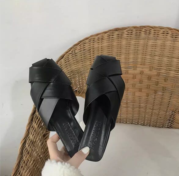 エレガントスリッパ3カラー展開のスクエアトゥサンダル。シンプルで上品なデザインが大人可愛いオシャレさを演出してくれます。美脚効果もあり、コンパクトなデザインなので持ち運びも便利。春夏秋に大活躍するアイテムです。