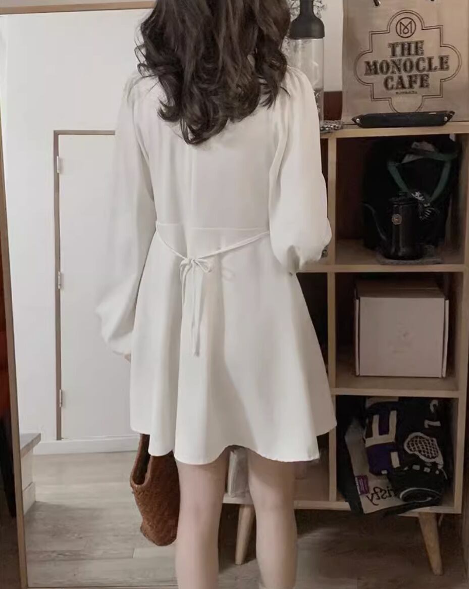 ワンピース デート フレアワンピース ミニ ミニ丈 ショート ショート丈 膝上 袖あり 長袖 ボリューム袖 ドルマンスリーブ Aライン 切り替えデザイン ウエストマーク 切り替えデザイン ハイウエスト かわいい 大人可愛い きれいめ シンプル 大人 上品 おしゃれ お洒落 大人女子 こなれ感 存在感 抜け感 無地 春 夏 秋 オールシーズン シーズンレス 誕生日 二次会 10代 20代 30代 レディース ママ デート お出かけ 女子会 旅行 ガーデン レストラン ショッピング ファッション コーデ