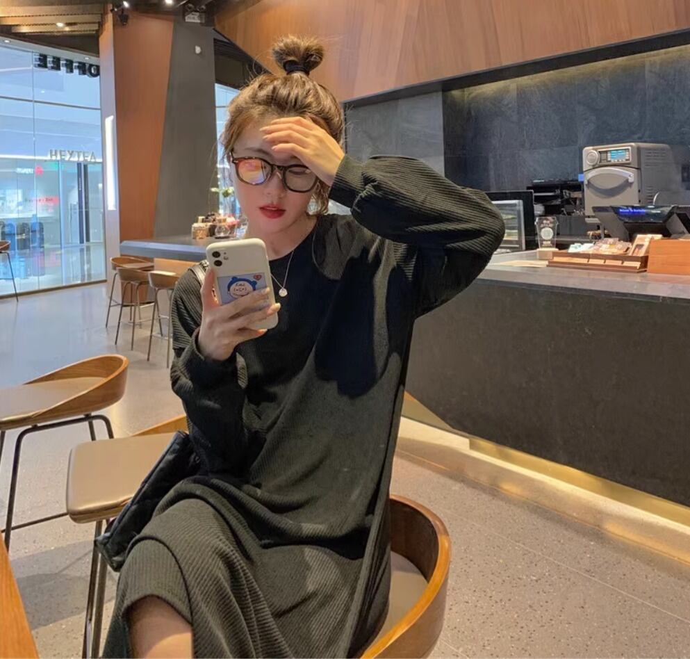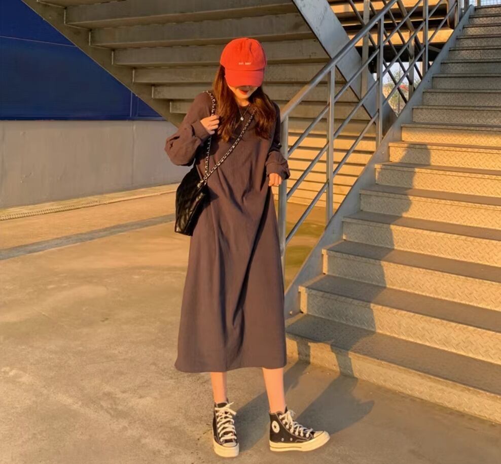 ワンピース デート ビッグT ミモレ丈 ロング ロング丈 マキシ マキシ丈 袖あり 長袖 ストレート かわいい 大人可愛い きれいめ シンプル カジュアル おしゃれ お洒落 大人可愛い 大人女子 こなれ感 存在感 抜け感 無地 春 秋 冬 誕生日 二次会 10代 20代 30代 レディース ママ OL デート お出かけ 女子会 旅行 ホテル ガーデン レストラン ショッピング ファッション コーデ スタイル 黒 茶色 ブラウン 灰色 グレー