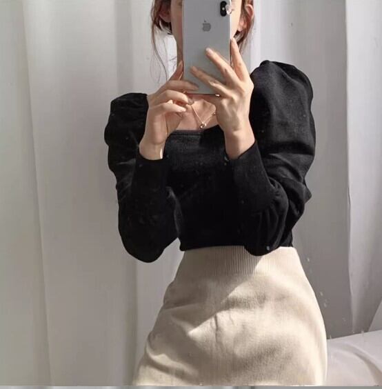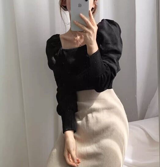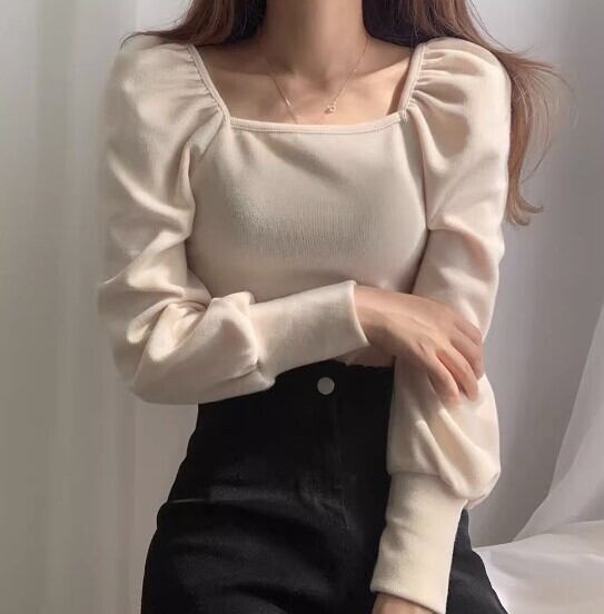トップス カットソー セーター 長袖 パフスリーブ スクエアネック ニット かわいい 大人可愛い きれいめ シンプル カジュアル おしゃれ かっこいい モード系 エレガント モダン 主役級 存在感 フォーマル とろみ感 都会的 ラグジュアリー 無地 春 秋 冬 誕生日 クリスマス バレンタイン オフィス ビジネス OL 通勤 学生 学校 通学 デート お出かけ お泊まり イベント 旅行 公園 女子会 休日 ショッピング 合コン コンパ カフェ 婚活 韓国 オルチャン コーデ 普段使い 着回し モテ 清楚