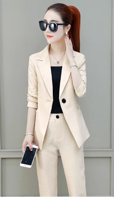 テーラードジャケットとストレートパンツのセットアップで、フォーマルなシーンでもカジュアルなシーンでも活躍します!
