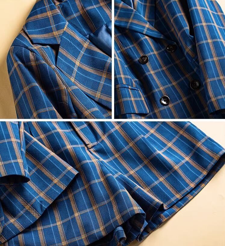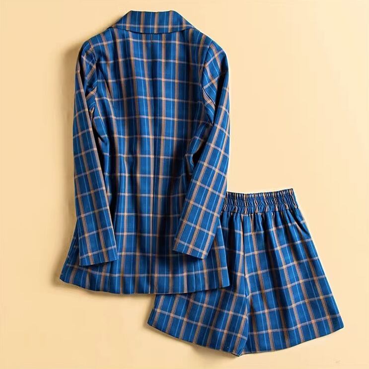 ツーピース レディース ジャケット セットアップ 上着 羽織 スーツジャケット ショートパンツ ショート 長袖 襟付き オーバーサイズ ポケット 前開き コンサバ ボタン 裏地付き シンプル カジュアル 上品 おしゃれ レトロ こなれ感 ラフ マニッシュ ルーズ 個性的 存在感 フォーマル 都会的 ラグジュアリー プレッピー ハイエンド 無地 チェック 春 夏 秋 オフィス ビジネス お出かけ パーティー 旅行 休日 ショッピング 合コン お呼ばれ 楽ちん 体型カバー 着回し ブラック ブルー 大人カラー