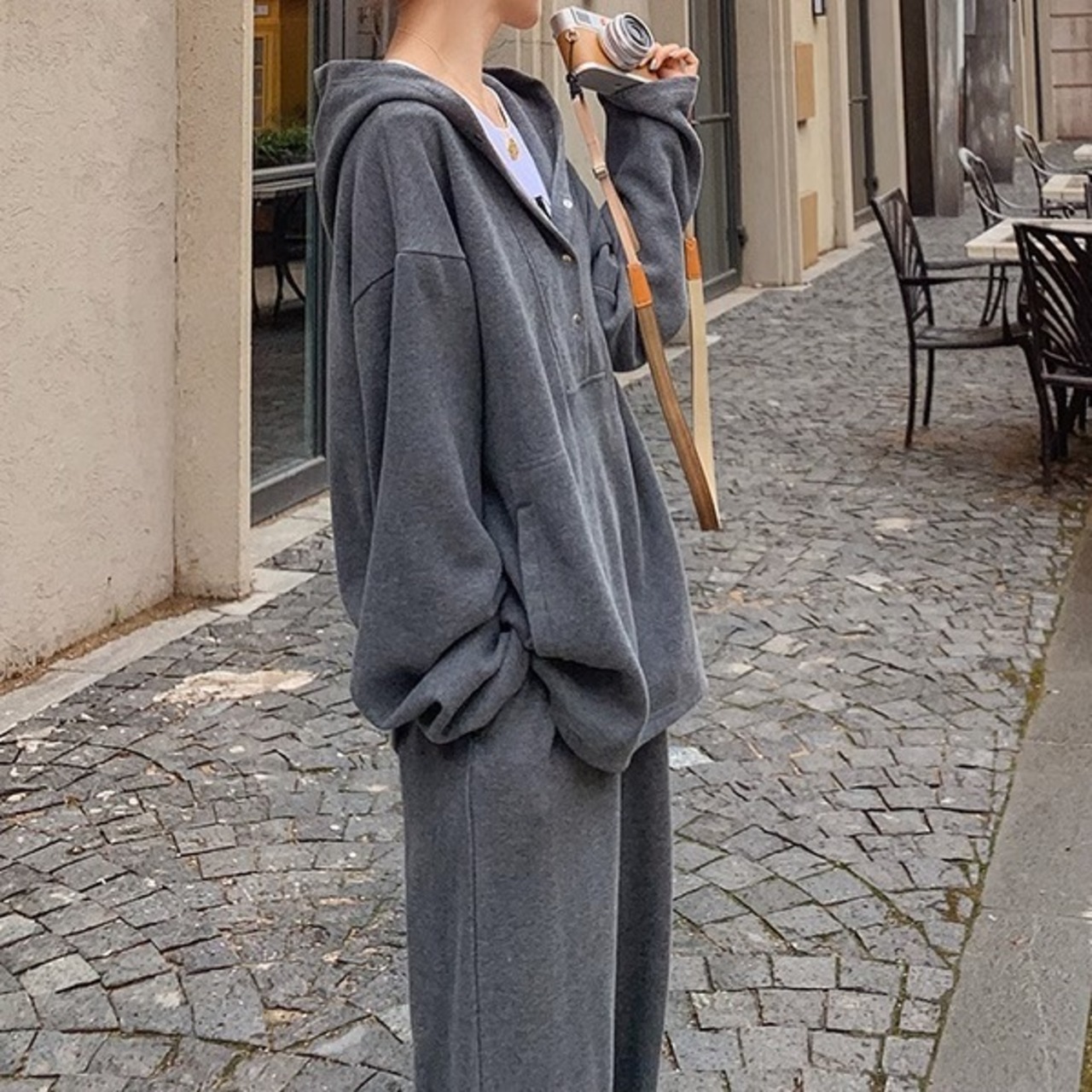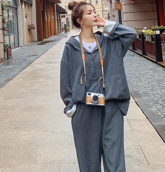 ツーピース レディース パンツ パーカー スウェット 部屋着 セットアップ スウェットパンツ ロング 長袖 襟なし フード ワイド ストレート Iライン オーバーサイズ ポケット 切りっぱなし ストレッチ 伸縮性 シンプル カジュアル おしゃれ かっこいい レトロ こなれ感 ラフ メンズライク ボーイッシュ スポーティー ルーズ 抜け感 カレッジ風 休日感 ストリート ジェンダーレス 活発 無地 秋 冬 ユニセックス お泊まり アウトドア キャンプ 休日 ダンス スポーツ おうち時間 普段使い グレー