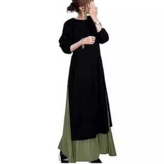 スリットの入ったロングワンピースとシフォンスカートのセットアイテムです。