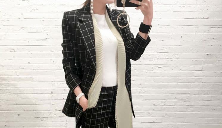チェック柄がクラシックな印象を与え、オフィスやフォーマルなシーンにぴったりです♪