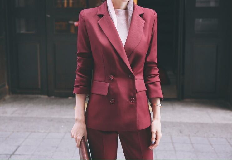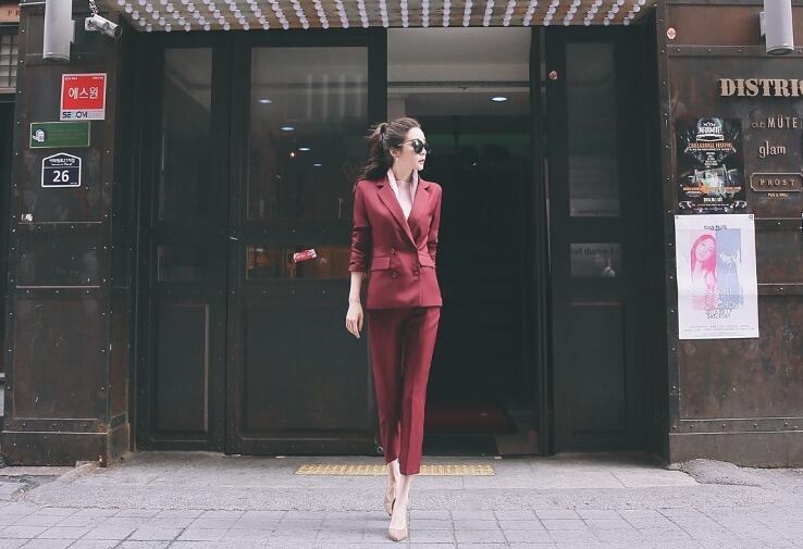 ジャケットは長袖でタイトなシルエット、パンツはテーパードシルエットで脚を細く見せてくれます☆ポケット付きなので、機能性も◎です!