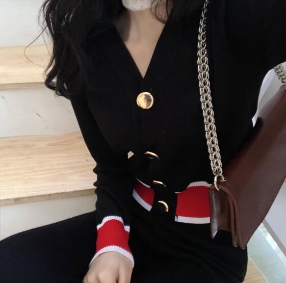 カーディガンはVネックと長袖で、スリムなシルエットが女性らしさを際立たせてくれます。