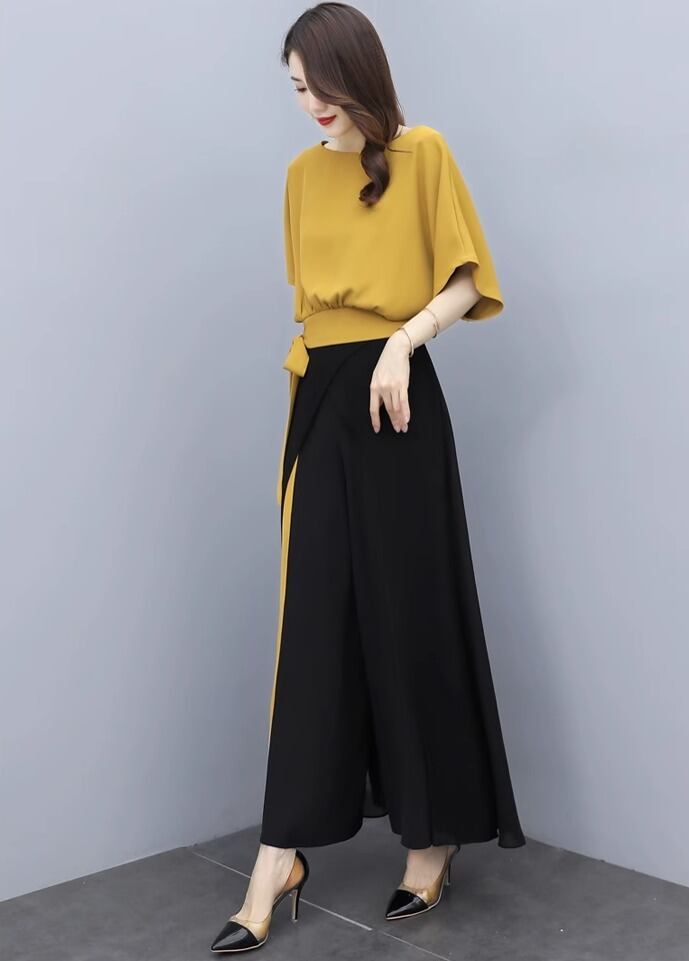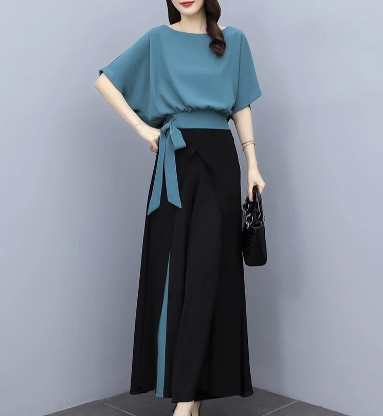 ツーピース セットアップ レディース パンツ カットソー ガウチョパンツ ロング 半袖 ドルマンスリーブ ボートネック 襟なし ノーカラー ワイド Aライン オーバーサイズ 変形 シフォン リボン ウエストマーク ファスナー コンサバ バイカラー 配色 薄手 柔らか さらさら きれいめ シンプル 上品 おしゃれ レトロ こなれ感 ラフ ルーズ 個性的 存在感 ラグジュアリー アクティブ ロマンティック ハイエンド 大人女子 ユニーク 無地 オフィス ビジネス 清楚 ゆったり イエロー ピンク ブルー